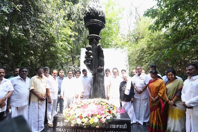 Earlier in the day, Stalin, Kanimozhi, Dayanidhi Maran, and T.R Baalu lead a victory march in Marina along with MPs and MLAs of the party and paid their respects to former Chief Ministers Anna and Karunanidhi. They had also visited the Periyar Memorial in Veppery.